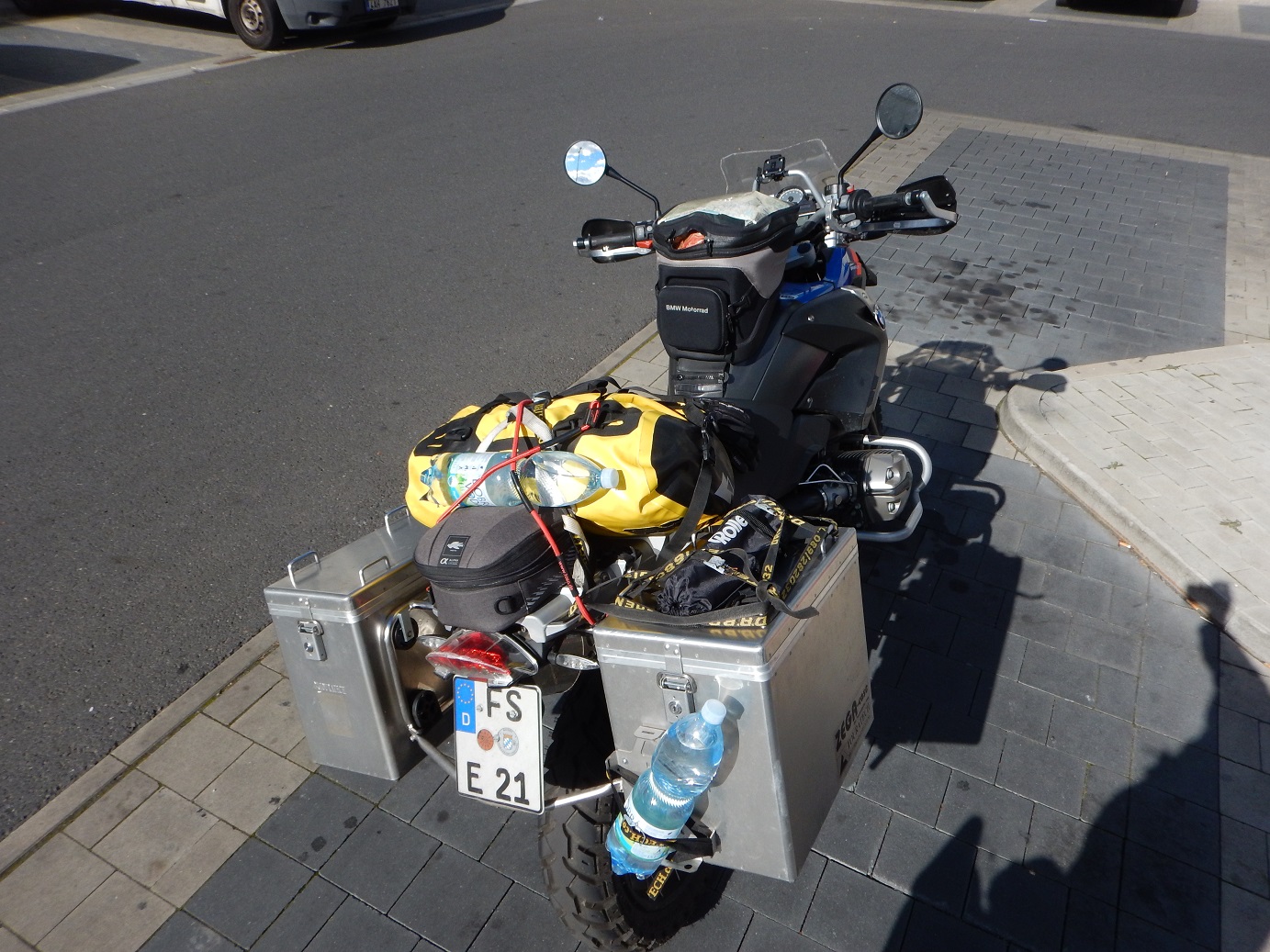 Ob nun Alu-Koffer oder nicht (Softbags sind häufig nicht so viel leichter), mit Camping- und Fotoausstattung kommen so fast 40 Kilo ans Heck.