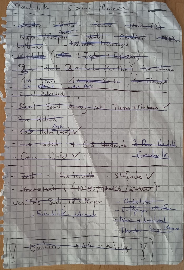 Wohin mit all dem Gepäck? Nicht nur aus Anfängerperspektive kein ganz triviales Thema. Ich lese immer ganz gerne was andere so mitnehmen. Und viel wichtiger: was daheim bleibt. Das wird in der Regel mit jeder Reise weniger, manches kommt aber auch dazu. Wie so vieles auf diesem Blog nutze ich diese Liste vorrangig für mich und passe sie so gut wie jedes Jahr leicht an. Neben meinen bisherigen Erfahrungen habe ich mich auch von Packlisten aus dem Adventure Motorcycling Handbook und Checklisten aus MOTORRAD inspirieren lassen.