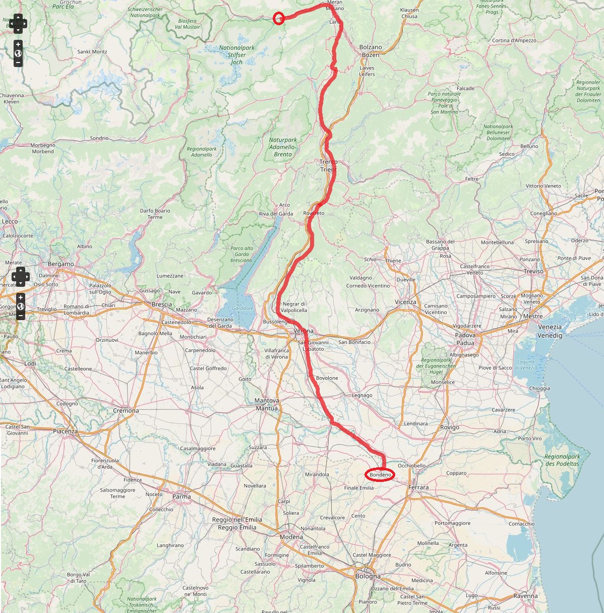• Abschnitt: Martello (Südtirol) nach Bordeno (Emiglia Romagna)