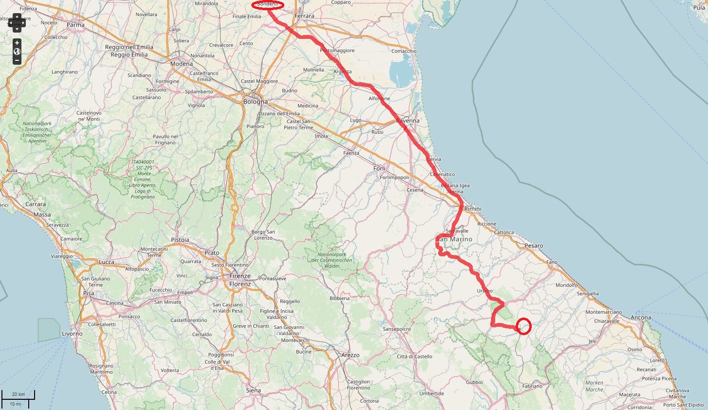 - Abschnitt: Casumaro (Emiglia-Romagna) – Palazzo di Arcevia (Marche)