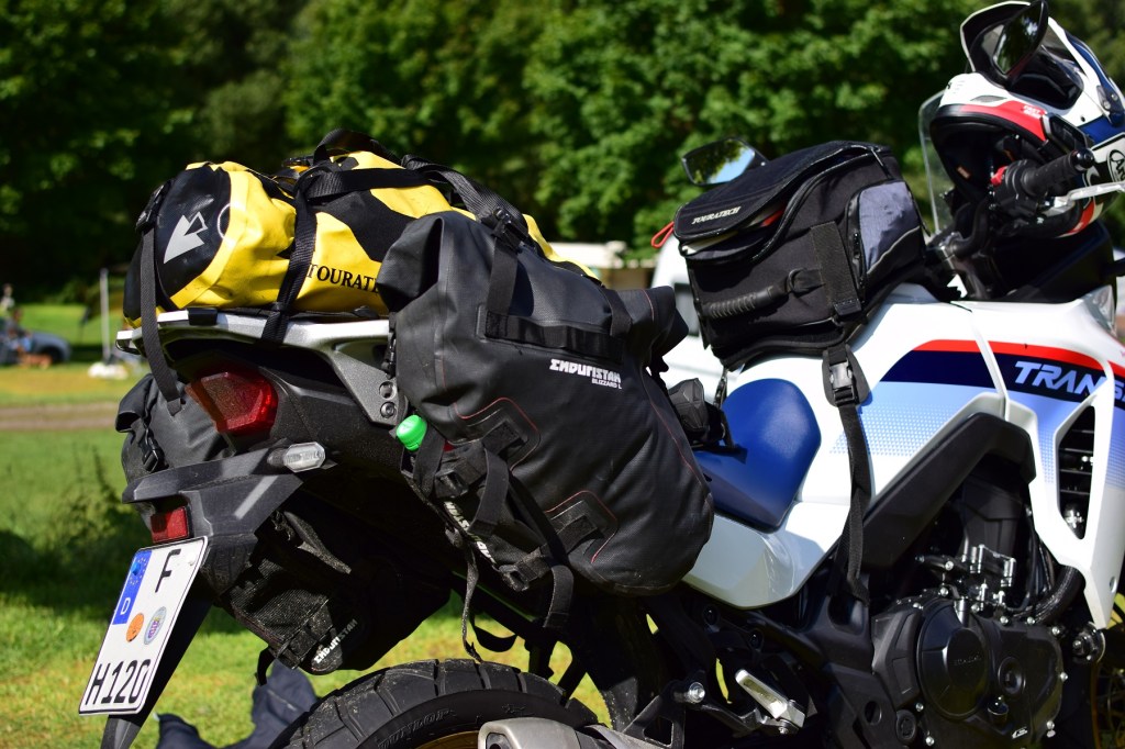 Nach mittlerweile einigen Jahren (und deutlich mehr Erfahrung mit anderen Gepäcksystemen) bin ich mal mehr, mal weniger begeistert. Als Universal-Lösung hängt es eben immer vom Heck und Auspuff ab. Jüngstes Beispiel, bei dem ich bis kurz vor der Abfahrt sehr unsicher war, war die neue Honda Transalp. Als es quasi nicht mehr straffer ging, musste ich (wie damals bei der Griechenlandreise) einfach darauf vertrauen, dass das leichte Baumeln für die Fahrt keine Rolle spielt. Und tatsächlich machten sich die Taschen auch an der Honda ganz gut. Während der Montage wollte ich sie schon fast ausmustern, aber nach ein paar Tagen in Tschechien fand ich sie dann doch wieder ganz praktisch: