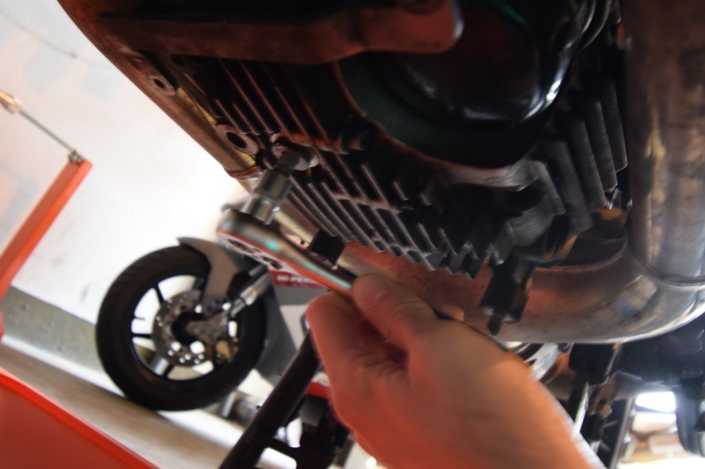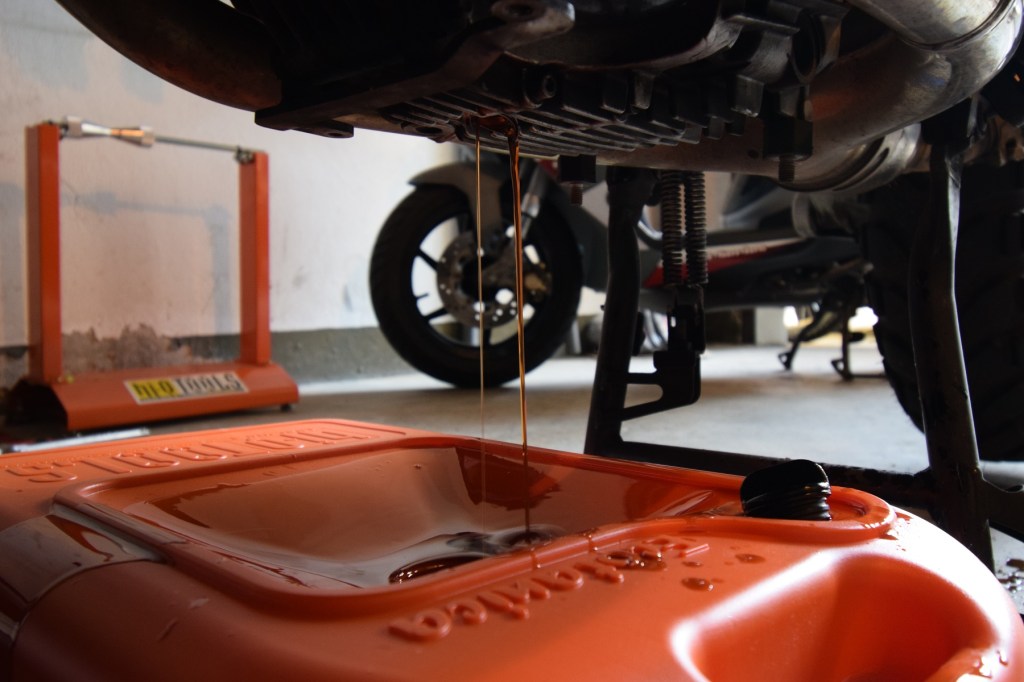Jeder Ölwechsel sollte „warm“ durchgeführt werden, d. h. mit warmgefahrenem Motor. Ein Grund sind die Verunreinigungen, die dabei in der Schwebe gehalten und beim Ölwechsel mit herausgeschwemmt werden sollen. Ein anderer Grund ist, dass bei vielen Motorrädern (so auch an der GS) ein zusätzlicher Ölkühler vorhanden ist, der erst ab einer gewissen Temperatur öffnet. Wird das Öl kalt abgelassen, verbleibt eine gewisse Restmenge im Kühler. Ein besonderer Tipp für die GS: Den Motorschutz am besten vorher demontieren, er ist nämlich mit zwei unterschiedlich großen Torx-Schrauben sowie zwei Muttern festgemacht. Also insgesamt drei (!) verschiedene Bits. Macht man das vorher in aller Ruhe, so ist alles sofort nach dem Warmfahren zugänglich. Bei nachgerüsteten, XL-Motorschutzplatten (wie ich mittlerweile habe), sind es meist noch mehr Schrauben…