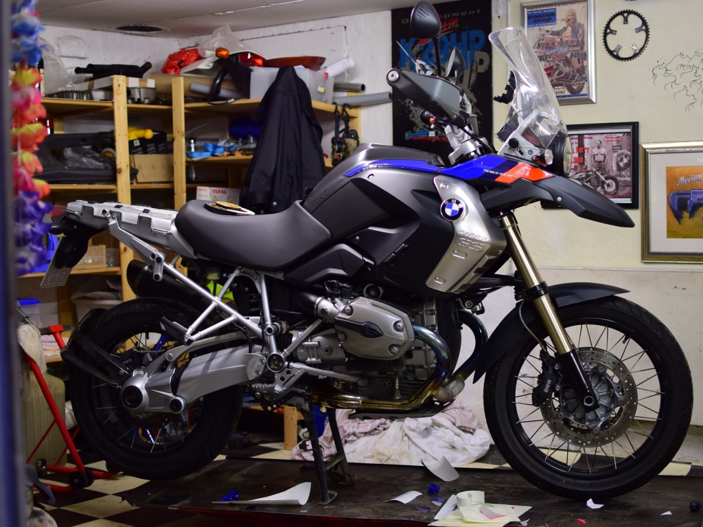 Dass Zubehörteile vieles verkomplizieren, ist mir jetzt außerdem auch am Beispiel der GS-Sitzbank aufgefallen. Die normale Sitzbank, aufgeteilt in Fahrer- und Soziussitz, ist mit einem Schlüsseldrehen und einem Ruck abgenommen. Die Nachrüst-Sitzbank ist aber mit einer zusätzlichen Halterung unterhalb der Gepäckbrücke befestigt, zudem war meine Hecktasche jedesmal im Weg, wenn ich die Sitzbank abbauen wollte. Da Batterie und Werkzeug angenehm zugänglich sind, ist das umso ärgerlicher. Zudem wird mir langsam klar, dass eine höhere (und einteilige) Sitzbank vielleicht besser aussieht, im Gelände aber eher Nachteile hat (wie schon an der Xchallenge bemerkt) und zudem mit dafür verantwortlich sein dürfte, dass ich keine vernünftige Einstellung für das Windschild finde. Das sind natürlich drei Sachen, die ich auch vorher hätte wissen können. Aber so ist das halt manchmal. Dafür werde ich die GS zur Abwechslung bald wieder in der Einsitzer-Variante fahren.