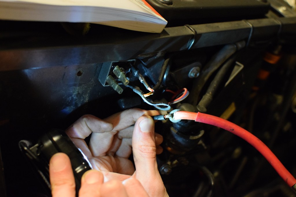 Ein weiteres Hindernis auf dem Weg zum Countdown war ein zum Glück offensichtlich abgerütteltes oder abgezogenes Kabel nahe der Batterie. Der Schaltplan war hilfreich und an dieser Stelle halbwegs verständlich, aber auch so blieb eigentlich nur eine Möglichkeit, wo das Kabel hingehört. Angelötet und mit Tape versiegelt sollte das wieder für die nächsten Jahre halten.