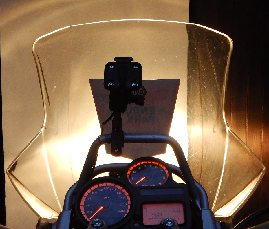 Eine größere Geschichte, die vielleicht auch noch ihren eigenen Beitrag bekommt, wird das Thema Windschild an der GS. Etwas, dass mich bereits bei der 650er GS Zeit, Geld und Nerven gekostet hat. Am besten war es immer mit einer kurzen Scheibe oder ganz ohne. Bei meiner 650 Xchallenge ist das mangels Windschild zum Glück kein Thema. An der 1200 GS hatte ich mich mehr oder weniger damit arrangiert, immerhin ist die Scheibe ja verstellbar. Aber ob in der tiefen, mittleren oder hohen der vielstufigen Rasten: So richtig zufrieden bin ich auf Dauer auch nicht. Spätestens ab 100. Und bei gemütlichen 120-130 auf der Autobahn buckel ich mich immer zusammen und frage mich, wie groß dieser Dummy wohl sein mag, den BMW im Windkanal auf die Prototypen schnallt. Eine kurze Episode ohne Windschild hatte ich noch gut in Erinnerung, allerdings gibt es durch die Verkleidung trotzdem Turbulenzen und wirklich gut aussehen tut’s auch nicht. Man sieht, dass etwas fehlt. Außerdem fühlt es sich nicht so gut an, wenn sich das Navi komplett gegen Wind, Regen und Insektenhagel stemmen muss.