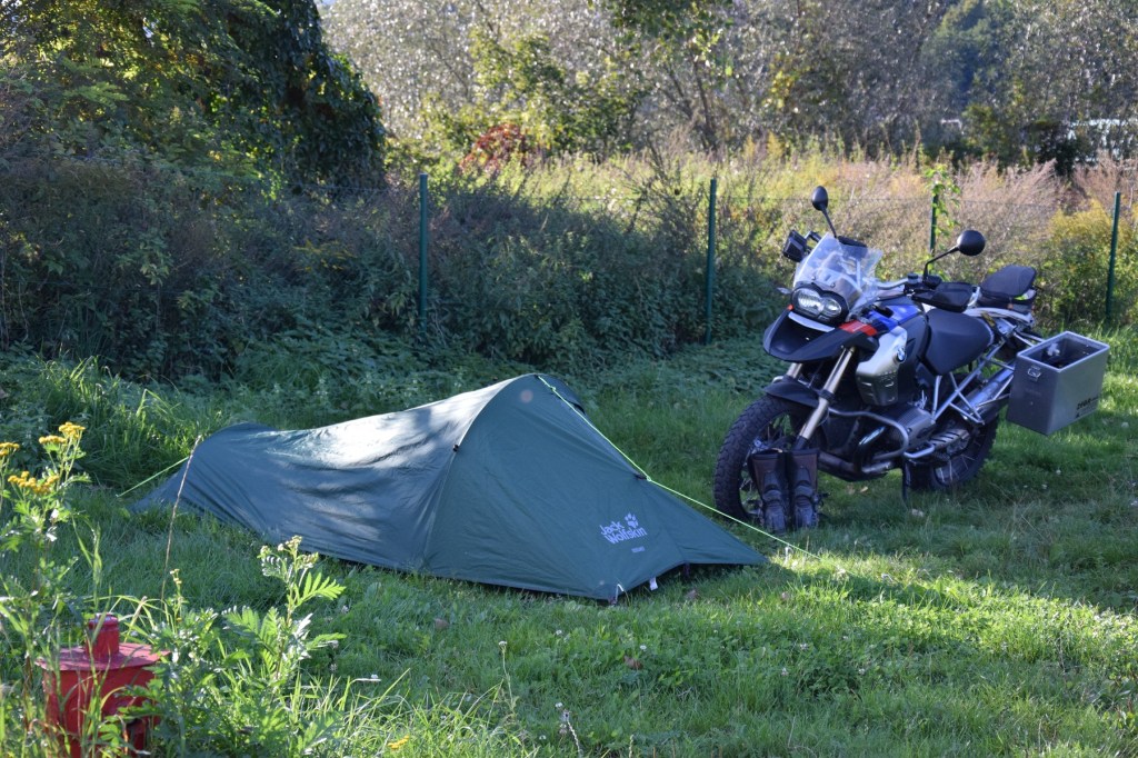 Bei der Suche nach minimalistischen Zelten stieß ich im Zuge meiner Reisevorbereitungen 2020 mal wieder auf eine stolze Preisspanne. Ich hätte zwischen 40 bis weit über 400 Euro für ein Zelt ausgeben können, das einfach etwas kompakter und leichter sein sollte, als mein 2er-Coleman-Zelt. Fündig wurde ich im Land der Funktionsklamotten, bei Jack Wolfskin. Die Bewährungsprobe bei Wind und Wetter hat das Zelt mit Bravour bestanden, die Motorrad-Wertung auch. Zumindest für mich.