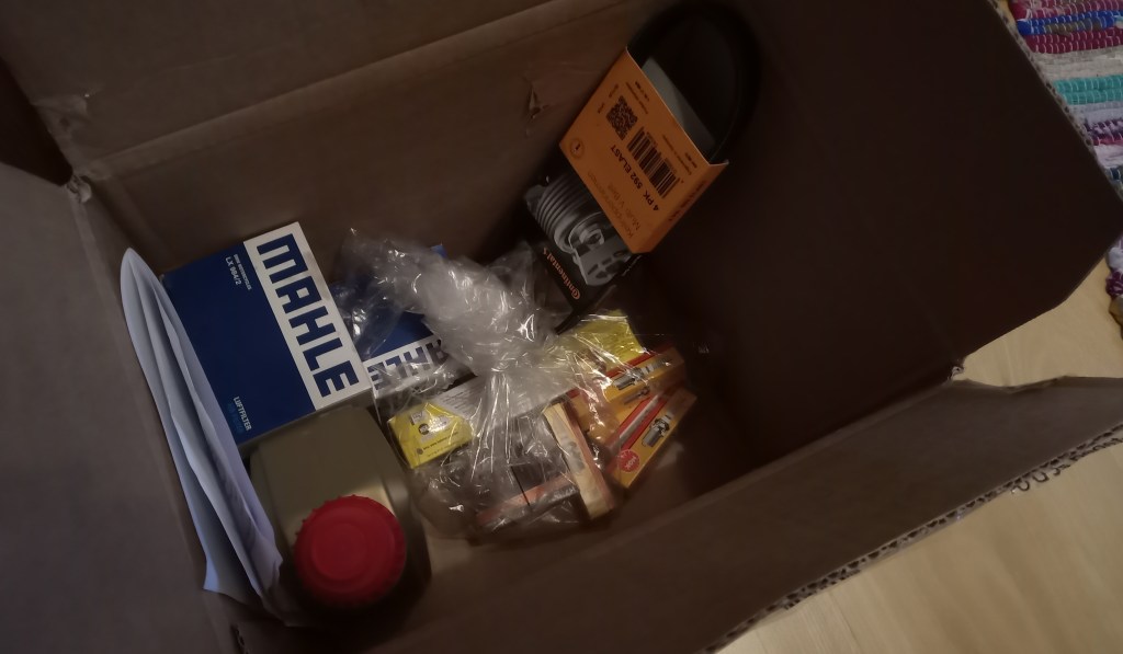Heute kam die Teilelieferung für den 40 000er Service der GS. Das Paket war kleiner als erwartet, der Grund dafür stand auf einem zigfach gefalteten Zettel von DPD. Scheinbar war der große Ölkanister undicht und das Paket musste im Depot neu verpackt werden. Sowas hatte ich auch noch nie, die Sache war aber mit einem Anruf erledigt. Luftfilter und Getriebeöl sind zwar noch nicht fällig, die sind aber nunmal im praktischen Wartungspaket dabei und überstehen ja auch etwas Zeit im Regal.