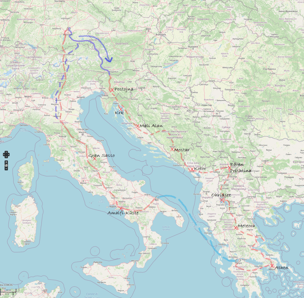 Da kommt was auf mich zu. 2020 war mir die Großwetterlage zu unsicher, 2021 habe ich es immerhin per Dienstreise bis Bosnien geschafft. Dieses Jahr möchte ich es erneut probieren und Griechenland auf dem Landweg erreichen. Wann und wie genau ist noch unklar. Eine gewisse Unsicherheit bzw. Spontanität möchte ich mir sogar erhalten. Bei gewissen Dingen möchte ich jedoch vorbereitet sein, selbst wenn es immer für alles eine Lösung gibt. Dieser Beitrag versteht sich daher als offenes Notizbuch und wird in unregelmäßigen Abständen aktualisiert. Letztes Update: 8. August 2022
