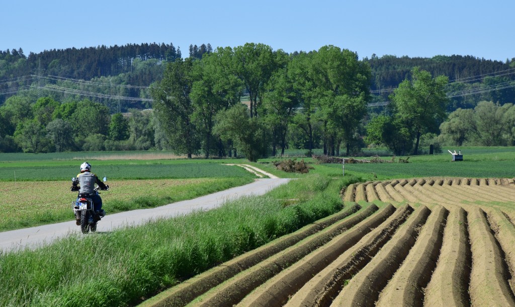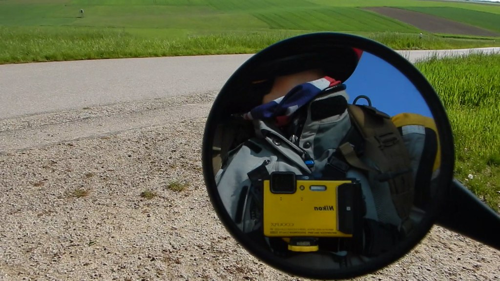 Für Aufnahmen aus Cockpitperspektive braucht es selbstverständlich eine kleine Kamera, außer man drückt einem temporären Sozius eine Spiegelreflex in die Hand. Mit meiner kleinen Nikon AW 130 ist die Masse meiner bisherigen Fahrfotos entstanden, denn sie ist auch mit Handschuhen gut einhändig bedienbar, jedoch nur auf geraden Strecken oder maximal leichten Kurven, idealerweise bergab (linke Hand zieht Kupplung, rechte Hand bedient Kamera). Das ist also sicherlich keine perfekte, aber dennoch bewährte Möglichkeit, spontan und ohne abzusteigen Fotos zu machen.