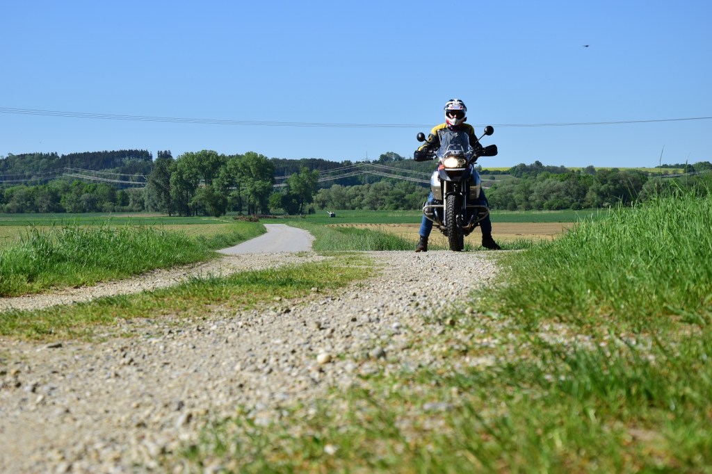 Option 2b sozusagen war es, den Timer mit dem Fernauslöser zu kombinieren. Auch das war wieder theoretisch eine gute Idee, weil man damit nochmal mehr Zeit hat, um in Position zu fahren. Man sitzt ja schon auf dem laufenden Motorrad. Das Problem auch hier: Es ist kaum zu erkennen, ob die Kamera den Timer gestartet hat. Meine Nikon blinkt zwar, das ist aus der Entfernung jedoch kaum auszumachen, zumindest am Tag. Der so gewonnene Abstand bringt in der Praxis also nichts.
