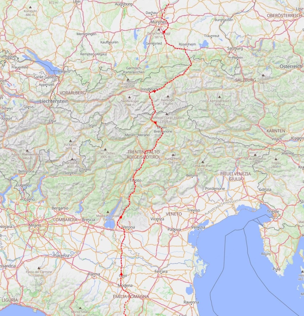 - Abschnitt: Maserno (Italien) – Freising (Deutschland)
