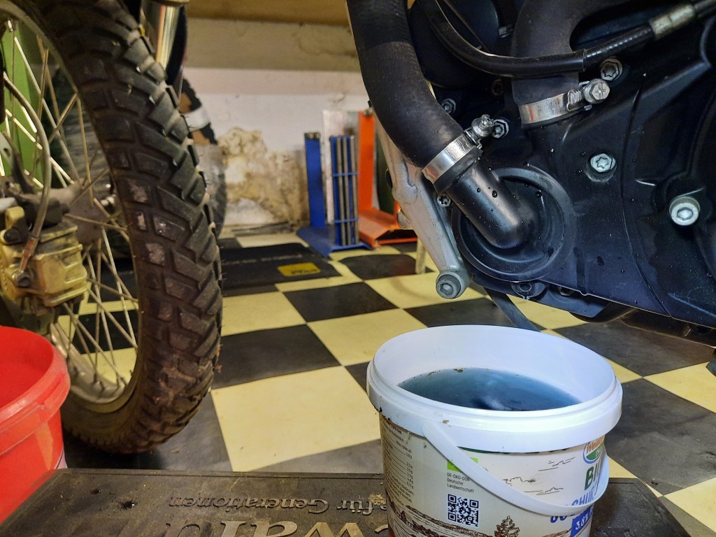 Bevor ich auf dieses Kapitel gesondert eingehe, habe ich mich zum ersten Mal selbst an den Wechsel der Kühlflüssigkeit getraut. Was der Anleitung nach ungefähr so schwer gewirkt hat, wie ein Ölwechsel (den ich davor bereits mit ziemlicher Routine erledigt habe). Die Einträge im G 650 X-Forum und auch das an sich gute Video des Old Mechanic trugen trotzdem hin und wieder zur Verunsicherung bei.