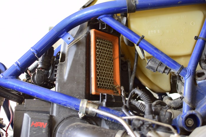 Beim Luftfilterwechsel wurde ich wieder schmerzlich daran erinnert, dass Leichtbau auch bei der Wartung mit Kompromissen behaftet ist und kleine Finger von Vorteil wären. An der GS ist der baugleiche Ansaugschnorchel jedenfalls leichter abgebaut, der Luftfilter leichter eingesetzt. Egal, erledigt.