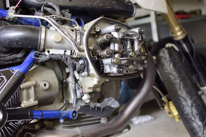 Danach musste ich nur noch darauf achten, keine Schraube zu vernachlässigen. Dichtungen, Zündspulen, Zündkabel und so weiter waren dann aber schnell montiert. Für den nächsten freien Nachmittag wartet schon der Enduroradsatz. Und dann steht noch ein Gabelservice und das Thema Bremsflüssigkeit an. Das werde ich voraussichtlich aber (noch) nicht selbst machen. Aber sehr vieles an der HP 2 ist jetzt wieder frisch, und das macht mich für den Moment schon glücklich genug und steigert die Vorfreude auf das Verfahren der ersten Tankfüllung.
