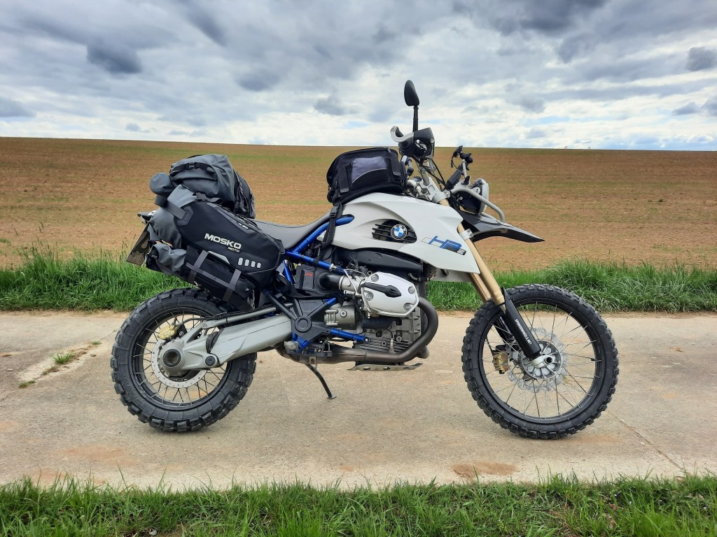 Für eine anstehende Dienstreise war das wichtigste jedoch, ein passendes Gepäcksystem zu finden. Und damit verbunden die Frage: Reicht das Reckless 40 von Mosko Moto, oder muss es das 80er sein? Da ich meine komplette Campingausrüstung (inklusive „Luxusgegenstände“ wie Kochtopf und Bialetti) und meine Fotoausrüstung dabei haben will, kam ich nicht um das 80er herum. Das passt aber ganz gut, und mit ein paar Komforteinbußen habe ich auch alles unterbekommen. Nur, dass halt jetzt alles auf sechs Taschen aufgeteilt ist, anstatt in zwei Koffern und einer Gepäckrolle. Aber das wird sich erfahrungsgemäß unterwegs sowieso nochmal ändern.