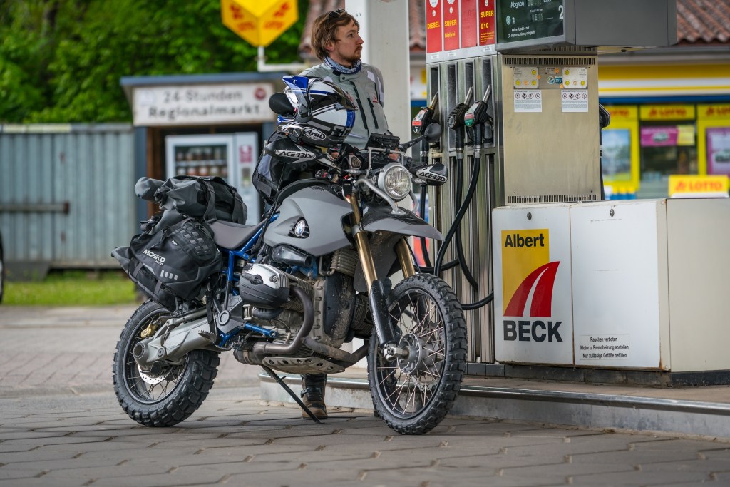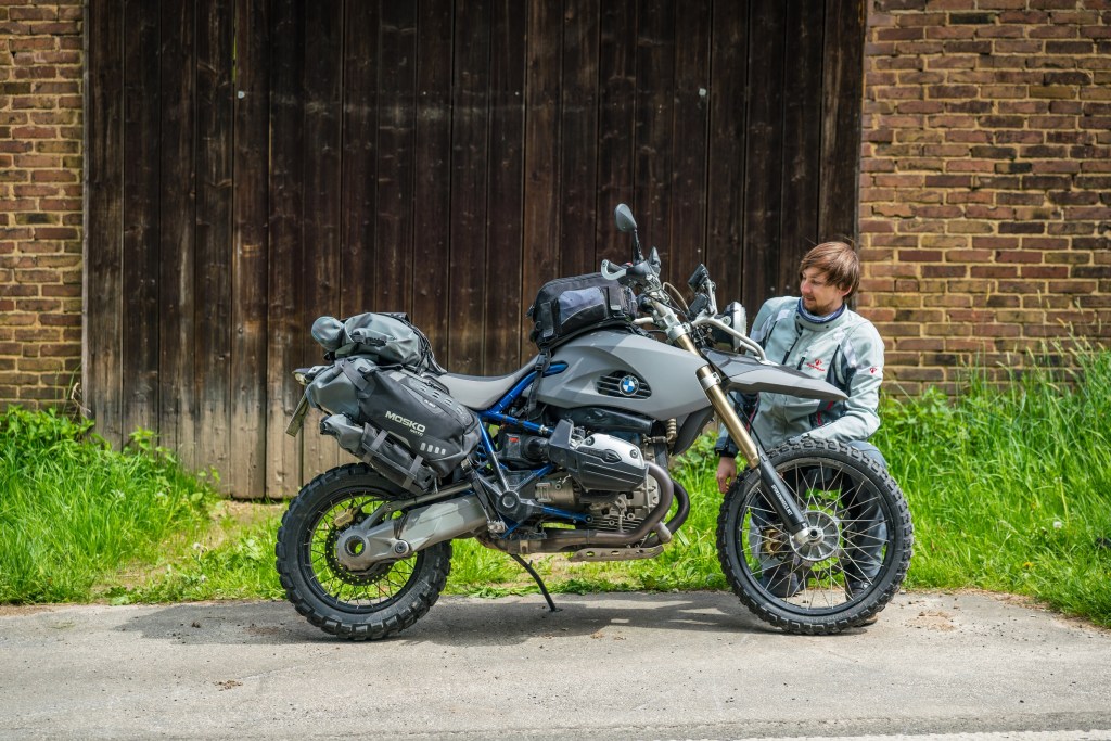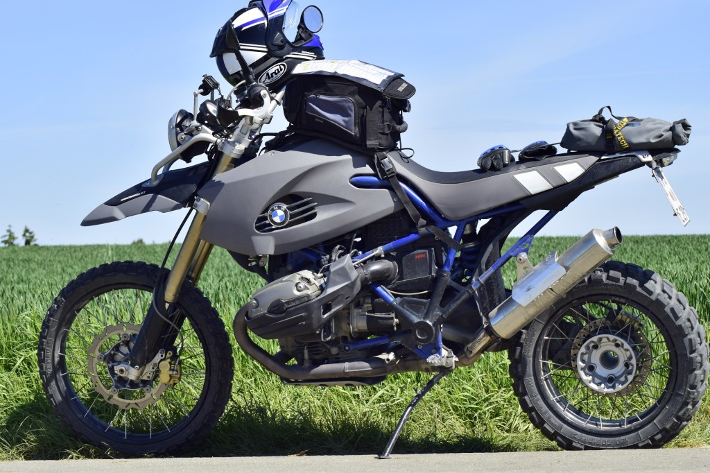 Auf einer Dienstreise ins Weserbergland (für RIDE), bei der ich auch zum Twinduro-Treff fuhr, konnte ich die HP2 dann auch als Reisemotorrad genießen. Mit passendem Gepäcksystem war Platz für Camping- und Fotoausrüstung. Deutlich weniger komfortabel als beim Alu-Koffer-Setup der GS, aber dafür kompakt und leicht. Passend zum Motorrad eben. Die im Vergleich zur GS schwache Einscheibenbremse und das fehlende ABS mahnen schon zu größerer Vorsicht, das immer noch hohe Gewicht bewahrt mich im Gelände vor Übermut. Und trotzdem macht es verdammt viel Spaß, egal, auf welchen Untergrund sich die Stollen anschmiegen – weil Leistung und Drehmoment im Überfluss vorhanden sind und das Handling so viel Vertrauen schenkt – so viel, dass ich doch immer wieder mit kleinem Lupfen des Gasgriffs über Schlaglöcher fliege und mich beim Stehendfahren und weit nach vorne lehnen zwischendurch fahrerisch so kompetent fühle, wie ich gern wäre. Und auf Pisten wird das fehlende ABS übrigens zum Vorteil: Denn zu dieser Zeit (und das betrifft daher auch meine anderen Motorräder) hat man das ABS im Zweifel doch lieber deaktiviert.