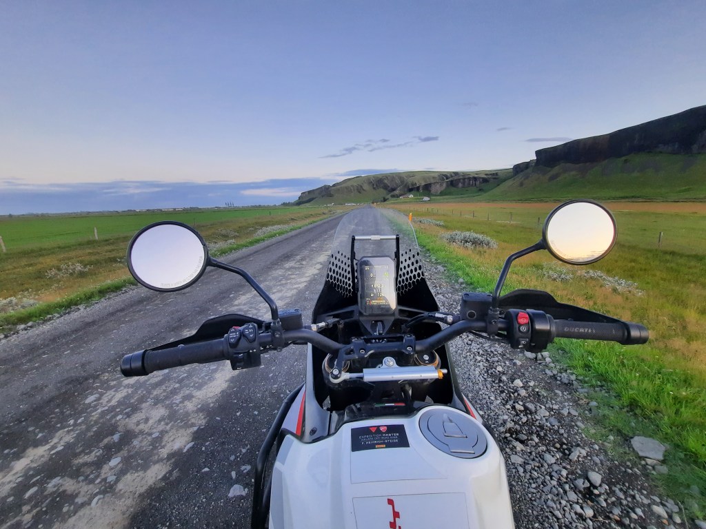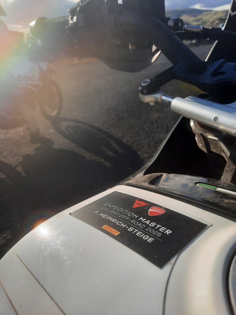 Als ich dann zwei Tage später auf Platz 28D der Boeing saß, konnte ich das alles nicht wirklich verdauen. Freute mich sehr auf daheim und war gleichzeitig traurig, nicht noch mehr Fahrtage mit neu gewonnenen Fahrfreunden genießen zu können. In den kommenden Nächten träumte ich immer irgendetwas von Island, den Pisten durch diese Mondlandschaften oder den von Touristen umströmten Hotspots wie den Wasserfällen, die uns gerade getrockneten Motorradfahrer wieder nass machten. Noch nie dauerte es so lange, bis ich Zuhause angekommen war. Und noch nie war ich so stolz auf eine Urkunde, die man ja bei so gut wie jedem Motorrad-Training und -Event mitbekommt. Ich dachte davor, dass „Expedition Master“ ein cooler Name für diese Tour war, aber auch etwas dick aufgetragen. Es war schließlich eine geführte und begleitete Tour. Aber mit jedem abgeschlossenen Tag hatte ich das Gefühl, mir diesen Titel auch zunehmend selbst zu verdienen, der da auf dem Tank meiner Leih-Ducati klebte. Das ist sicher im Sinne des Erfinders. Oder auch nicht. Oder etwas pathetisch. Und jeder, der sowas vor 30 Jahren mit dem eigenen Motorrad unternommen hat und allein schon die drei Tage Anreise auf der Fähre überstanden hat, hätte den Titel wohl mehr verdient als ich Pauschal-Motorradtourist. Aber das ist mir ausnahmsweise mal egal – denn gefahren bin immer noch ich. Und am Ende dieser Woche hatte ich das Gefühl, nicht nur diese „Expedition“ gemeistert zu haben, sondern auch meine Ängste, Bedenken und falsche Bescheidenheit. Und das ist ein Gefühl, von dem ich mindestens genauso zehren werde, wie von der Schönheit dieser Insel.