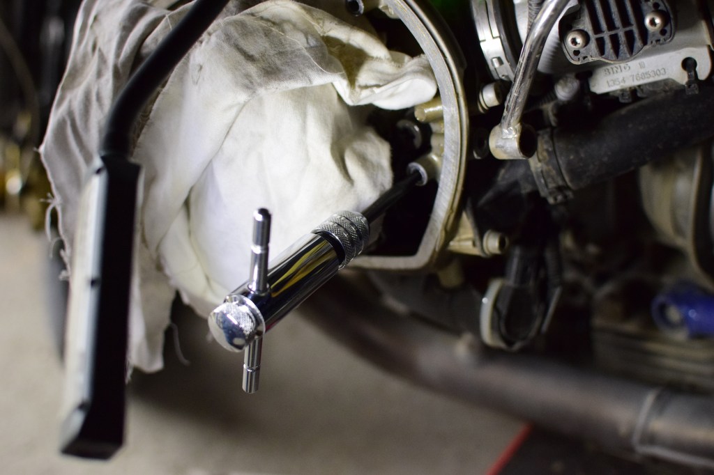 Ich blieb in dem Moment relativ ruhig, ohne mich sofort über meinen dämlichen Fehler zu ärgern, der mein teures Motorspielzeug vorübergehend außer Gefecht setzte. Es hatte mittlerweile eh Temperaturen um die null Grad. Und das würde für die nächsten drei Monate auch nicht viel anders sein. Trotzdem ärgerte ich mich, logisch. Das gefährliche Halbwissen melde sich sofort: „Helicoil!“ Aber das wäre schon Schritt zwei oder drei. „Ausdreher“ schien das Mittel der Wahl zu sein. Auch wenn mir diese Geschichte, die in der Garage auf mich wartete, ein-, zweimal schlecht einschlafen und sogar davon träumen ließ: Ich bekam es relativ schnell hin, das alles im Verhältnis zu sehen. Immerhin! Trotzdem wartete hinter dem Garagentor jedes Mal ein schmerzender Anblick.