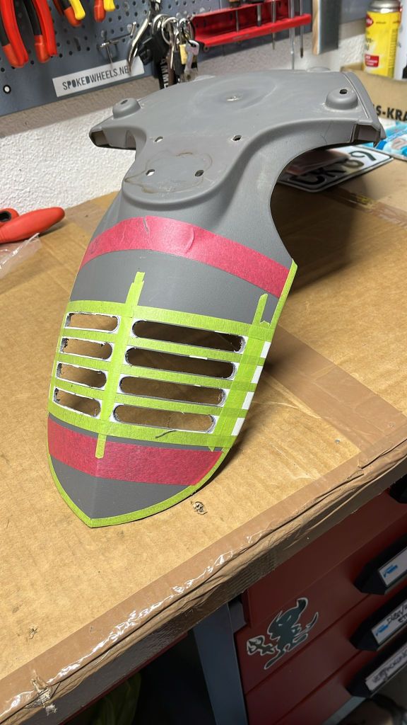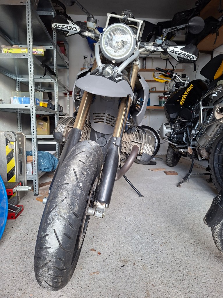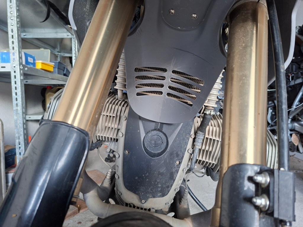 Die HP2 hat mich in den letzten Monaten mehr beschäftigt als ich geplant hatte. Aber mittlerweile kann ich darüber lachen. Parallel dazu konnte ich ein weiteres Problemchen lösen (lassen), denn der nicht mehr ganz serienmäßige Ölkühler wurde bislang vom ursprünglich serienmäßigen Frontfender verdeckt. Was selbst im Sommer allenfalls zu zwei, meist nur einem Balken mehr im Display als üblich führte. Trotzdem wollte ich es darauf nicht ankommen lassen. Und nachdem die wunderschöne R 12 G/S ein ähnliches Konstrukt ab Werk auffährt, kann das nicht so verkehrt sein. Aber ich lasse mal die Bildergalerie sprechen: